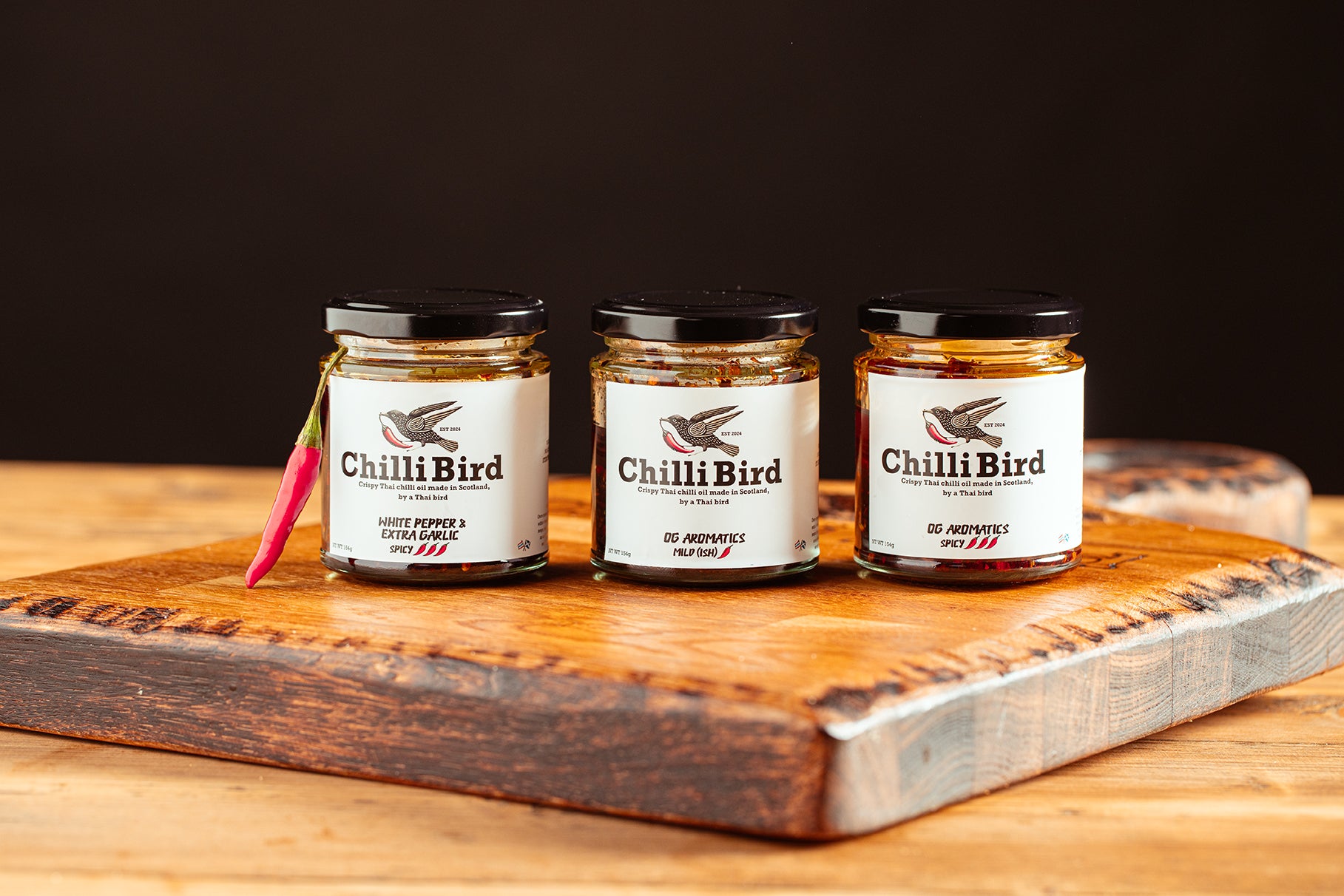 Born from my desire to see a cripsy chilli oil on the market with cleaner ingredients and Thai in flavour, a few years ago in my humble kitchen in Fife, Scotland, Chilli Bird was first created. My goal is to see the flavours of Thailand (my country of birth) elevated and present in everyones home just like they are in mine. This unique product makes it easy for you and your family to experience the exotic and intense flavours of Thailand in the comfort of your own home. Flavors are aromatic and fragrant and undoubtedly spicy in the most enjoyably addictive way. These chilli oils will become your moreish meal time sidekick and you wont want to see your fridge without it! Thank you for supporting this tiny family run business which I have poured my heart and soul into. Please tell your friends about us. I hope you love these products and I hope you return time and time again. Remember: